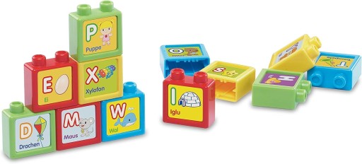 - Підтримує розвиток мовлення, вставляючи блоки, літери та предмети, завдяки яким дитина вивчає літери, цифри, тварин та предмети