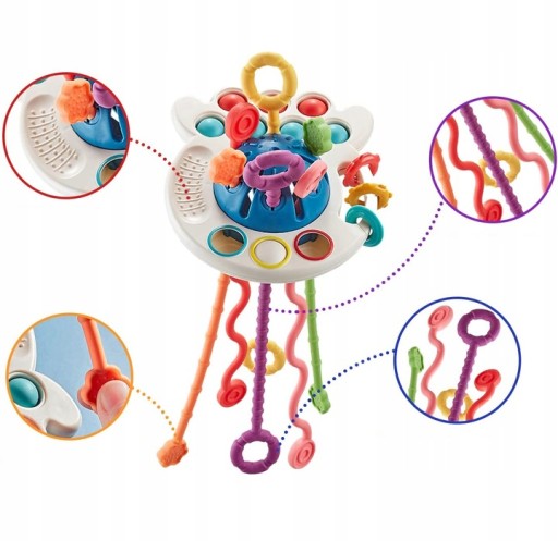 Маленькі діти можуть зміцнити м’язи рук, сенсорику, дрібну моторику та координацію рук і очей, тягнучи та торкаючись сенсорних іграшок.