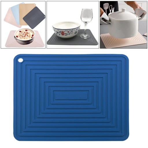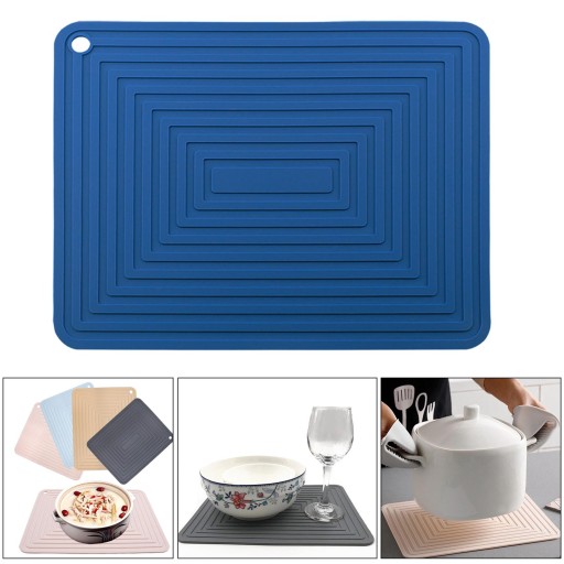 Водонепроникний тримач для сушіння посуду. Термостійкий килимок для сушіння посуду. Темно-синій