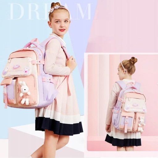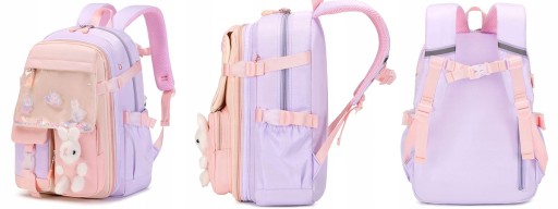 У цьому милому шкільному рюкзаку для дівчаток використовуються синій, фіолетовий і рожевий основні кольори. Чудовий колір, милий зайчик, блискучі паєтки та мультяшний принт роблять цей дитячий рюкзак більш схожим на казку.