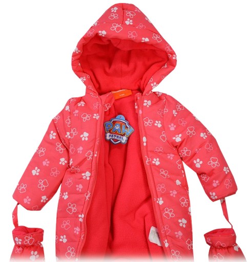 Крій: комбінезон, двостороння блискавка, зручні блискавки закріплені матеріалом, щоб не дратувати шкіру дитини. Капюшон утеплений, рукавички кріпляться на рукава на застібку. Спереду принт собаки з мультфільму "Щенячий патруль".
