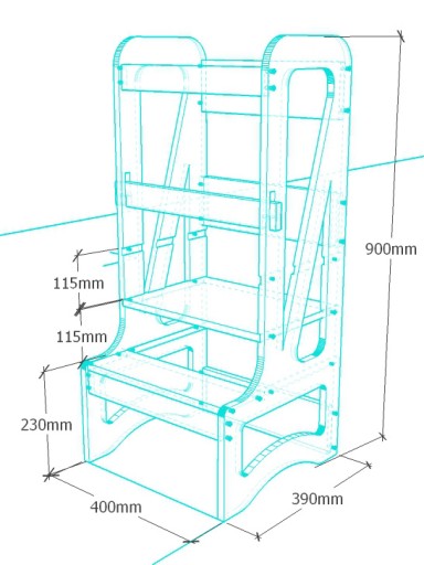 У нашому помічнику ми використовували триступінчасте регулювання підлоги, щоб можна було підлаштувати висоту платформи під зріст дитини і дозволити дитині рости разом з ним.