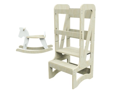Конструкція основи захищає помічника від перекидання та падіння дитини. Оздоблення: вощена фанера для надмалої ваги. Краї поліровані та безпечні. Наш помічник підходить для дітей від 12 місяців до 7 років.
