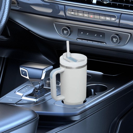Автомобільна кухоль з ручкою з кришкою та соломинкою Автомобільна кухоль для кави з водою світло-сіра
