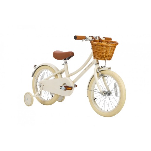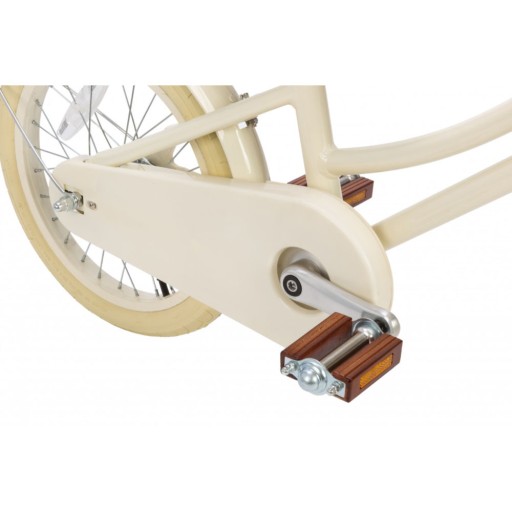 Легка алюмінієва рама кремового кольору. Ножне гальмо, ручне гальмо на кермі, адаптовані під руку дитини. Стильні педалі з палісандра. Плетений кошик для керма. Тренувальні колеса.