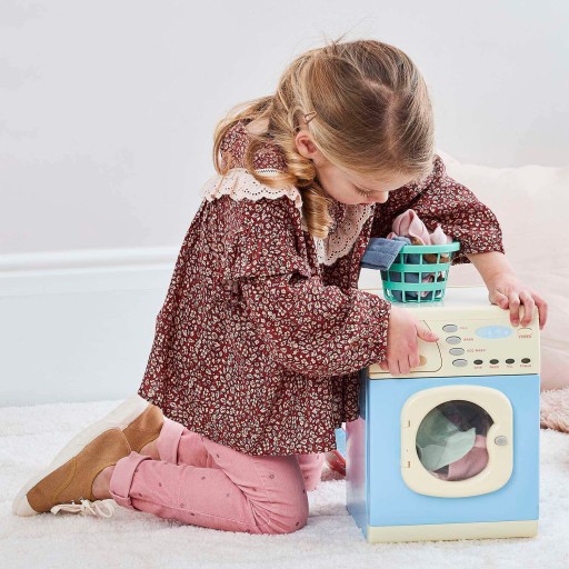 Цей чудовий і надзвичайно стильний набір порадує будь-яку дитину, яка любить грати в будиночки або наслідувати своїх батьків під час повсякденних справ. Завдяки цьому набору ваша дитина навчиться прати, розвішувати білизну на сушильну машину, прасувати її, а потім розміщувати одяг на вішалках. Якісна робота та увага до деталей гарантують, що цей набір прослужить дітям довгий час.