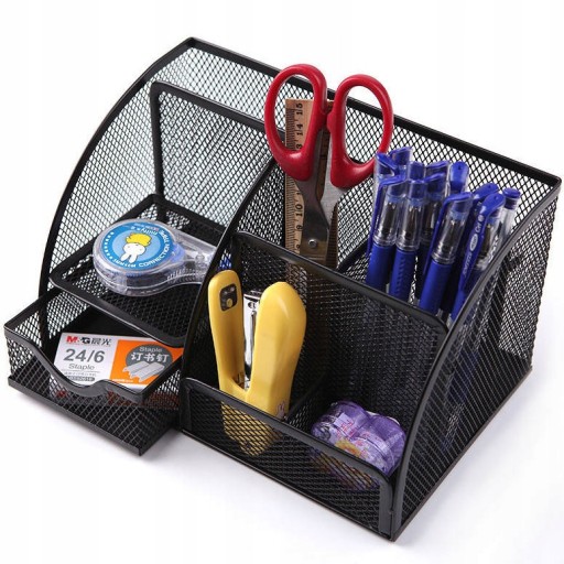 - місткий - має до 6 відділень, тому можна розташувати все найнеобхідніше для роботи чи навчання (ручки, олівці, скріпки, гумки, папірці, клейкі матеріали, ножиці, зошити, зошити)