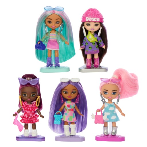 Цей набір Barbie Extra Mini Minis включає п'ять ляльок.