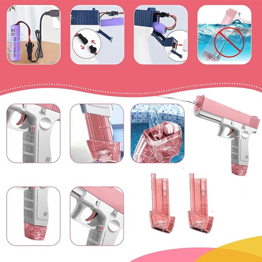 Ідеальні водні бойові іграшки: цей електричний водяний пістолет є ідеальним подарунком для вечірки та прекрасним подарунком для різноманітних фестивалів. Ручки мають протиковзку конструкцію. Тому дорослі можуть використовувати його без проблем. Іграшка з автоматичним водяним пістолетом також чудово підходить для дітей, щоб грати та спілкуватися з друзями чи родиною на пляжі, піску чи басейні. Електричний водяний пістолет забезпечує безмежне задоволення, захоплюючі водні ігри з друзями та дітьми.