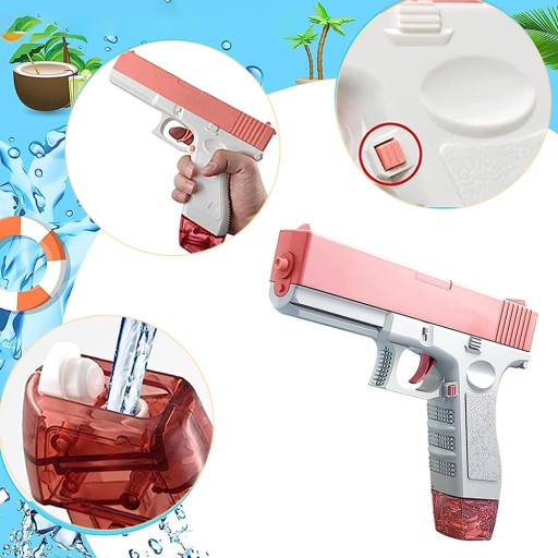 Високоякісний матеріал: електричний водяний пістолет виготовлений з високоякісного ABS-пластику, а водяний пістолет, який автоматично виймається з резервуара для води, виготовлений з прозорого матеріалу, тому ви можете бачити, скільки там води. Автоматичний водяний пістолет має неслизьку ручку та ергономічний дизайн. Ним можуть легко керувати як дорослі, так і діти.
