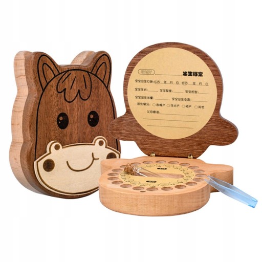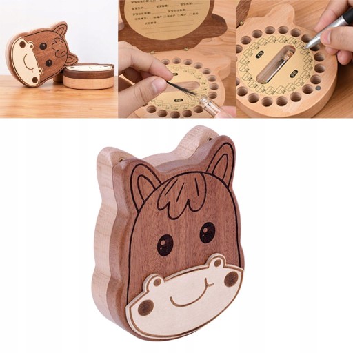 Дерев'яна коробка для дитячих зубів для зберігання молочних зубів Lanugo Hair Collect Case Horse