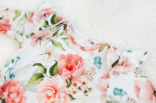 У набір входять три красиво скомпоновані елементи: спортивні штани, боді з довгими рукавами та надзвичайно практична широка пов’язка на вуха. Одяг м'який і дуже зручний, але в той же час має унікальний стиль. Тому набір півоній - ідеальний подарунок для новонародженого або маленької дівчинки.
