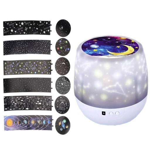 Шість відеороликів на вибір: із шістьма різними темами: сузір’я, Сонячна система, зоряне небо, день народження, океан, місяць. Ця красива сцена буде проектуватися на стелю або стіну, створюючи романтичну та мрійливу атмосферу. Насолоджуйтеся повним зоряним небом у мирі зі своєю родиною.