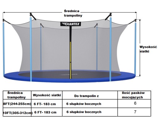 - Підходить для батутів діаметром 305-312 см