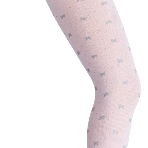 Красиві непрозорі колготки для модних дівчат із сріблястими блискучими бантами та крапками з м’якої пряжі Microfiber 50 деньє.
