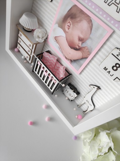 Рамку можна поставити на предмет меблів (у неї є ніжка) або повісити на стіну. Використані кольори: рожевий для дівчинки та блакитний для хлопчика. За запитом ми можемо змінити кольори відповідно до наданих інструкцій.
