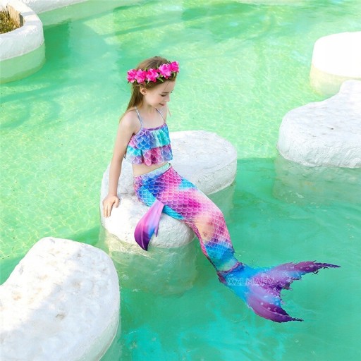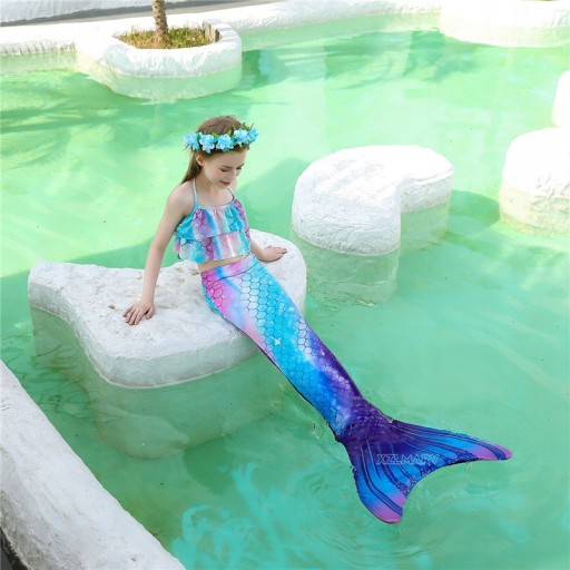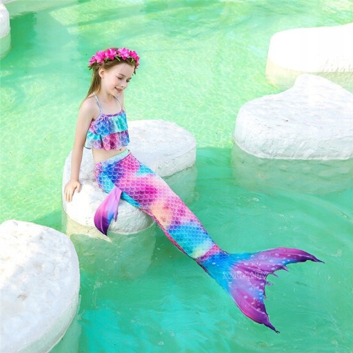 Діти, дівчата, плавання, хвіст русалки, костюм русалки, косплей, дитячий купальник, фантазійне пляжне бікіні, можна додати моноласти, плавники, Хелловін