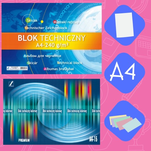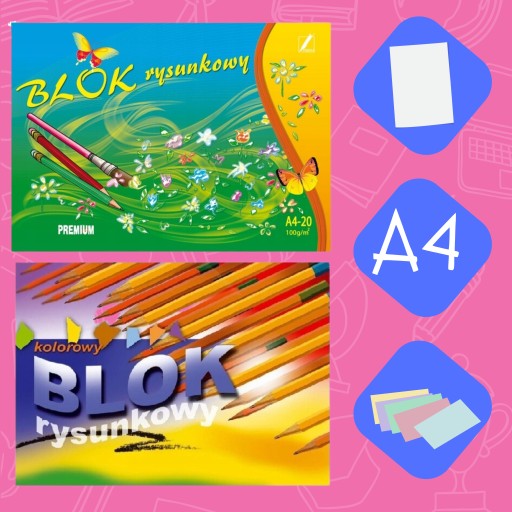 Блок для школи, садка та домашнього використання. Ідеально підходить для малювання, малюнків, ескізів або вирізання елементів і створення з них різних конструкцій. Закріплений картонною підкладкою.
