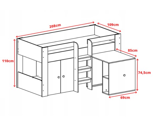 Дитяче двоярусне ліжко з комодом і письмовим столом - KIDO 1