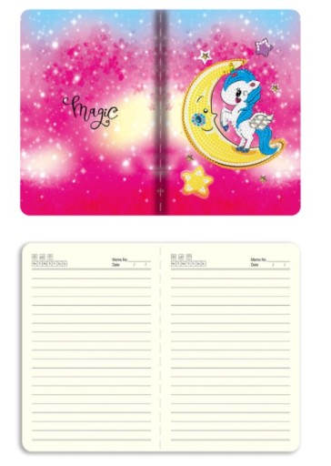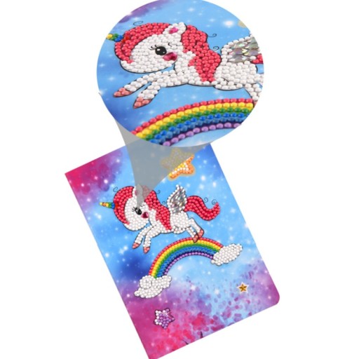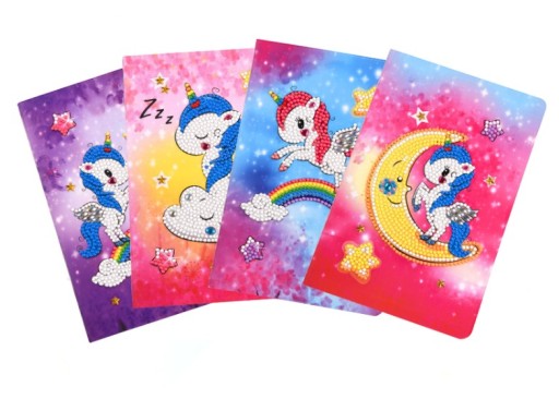 ФІОЛЕТОВИЙ ЩОДЕННИК З ЄДИНОРОГОМ, 5D ДИАМАНТОВА ВИШИВКА - ОБКЛАДИНКА ДЛЯ ВЛАСНОГО ПРИКРАСЕННЯ + РУЧКА З ЄДИНОРОГОМ БЕЗКОШТОВНО