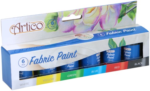 У наборі 6 кольорів по 20 мл. Кольори в наявності: червоний, жовтий, синій, зелений, чорний та білий. Ці унікальні фарби радують інтенсивними художніми відтінками, присвяченими різним типам тканин.