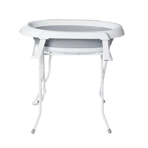Міцна металева підставка під ванну дозволяє батькам комфортно і безпечно купати дитину, не нахиляючись.
