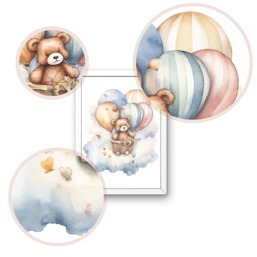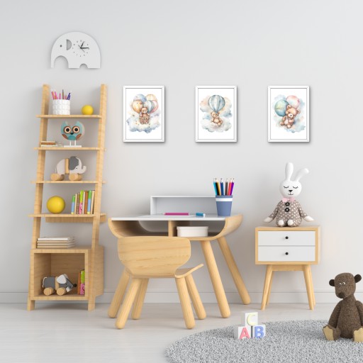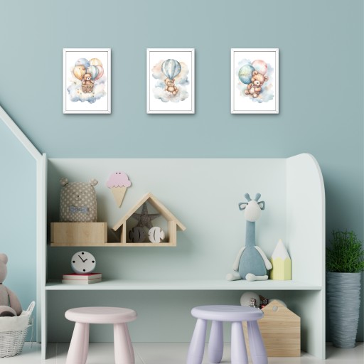 - Набір плакатів «Ведмедики з повітряними кульками» - чудова ідея для облаштування дитячої кімнати.
