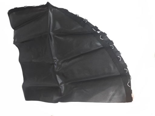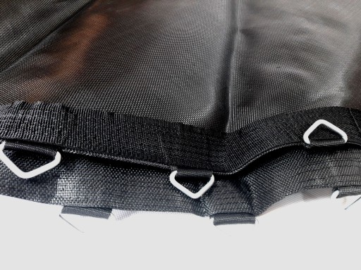 Килимок має діаметр близько 400 см. Килимок виготовлено з поліпропіленової тканини, виготовленої за ліцензією США (вага 280 г/кв. м), стійкої до несприятливих погодних умов і сонячного випромінювання. Через 10 років він чорний як новий. Зроблено естетично та ідеально. Багатократно проклеєний посилений шов. Міцність: 150 кг. Якщо пружини 17 - 19 см (з гачками), то мат точно підійде. ПРИМІТКА: встановлюйте новий килимок, спочатку встановлюючи кожну 4-ту пружину. Потім заповнюємо решту.