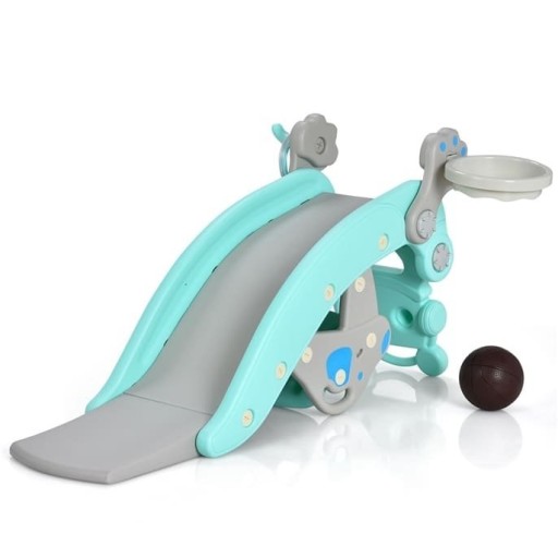 Конструкція 4 в 1: коли сідло знімається, конячка-гойдалка перетворюється на гірку. Крім того, його конструкція оснащена баскетбольним кільцем і гаком, що дозволяє дітям грати в баскетбол і кидати кільця.