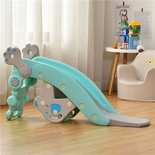 Гарантована безпека: гірка має різні протиковзкі зони, завдяки яким діти можуть безпечно та плавно ковзати. Амплітуда кута нахилу конячки-гойдалки становить 38°, що гарантує, що малюки не впадуть під час гойдання.