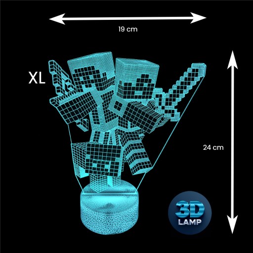 Світлодіодний нічник Minecraft XL 3D LAMP світить 16 кольорами (пульт), 7 кольорів з кнопкою на основі (це лампа останнього покоління). Світлодіодна лампа може світити одним фіксованим вибраним кольором (залежно від вашого вибору) або змінним режимом (плавно змінюючи відтінки або пульсуючи). Лампа не гріється, є можливість регулювати інтенсивність світла (підсвічування та затемнення - перші дві кнопки зліва на пульті). Цей список стосується лампи XL.