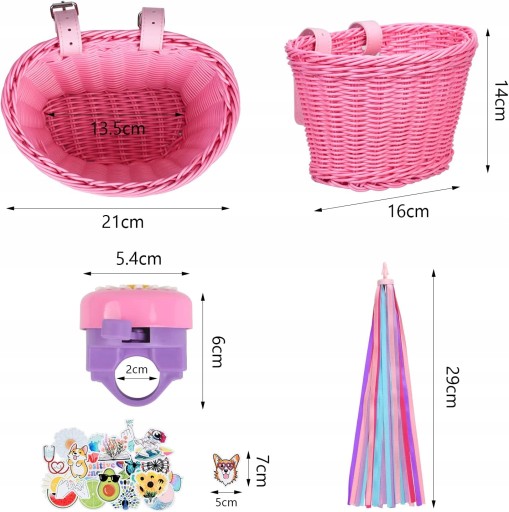 Велосипедний кошик і дзвінок можна прикріпити до керма дитячого велосипеда. На велосипеді барвисті стрічки з бахромою танцюють з вітром. Ідеальне поєднання та чудові подарунки для дітей на дні народження чи інші події.