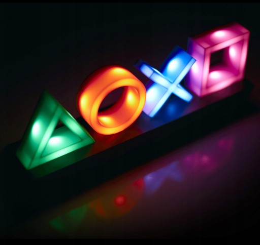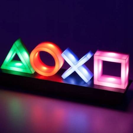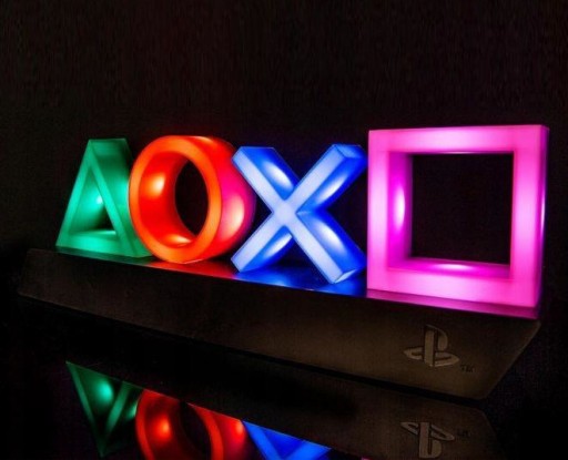 Лампа створена для любителів класичного дизайну консолей Playstation. Підставка нагадує форму консолі, а частини, які дають світло, являють собою чотири значки, відповідні тим, що на панелі.