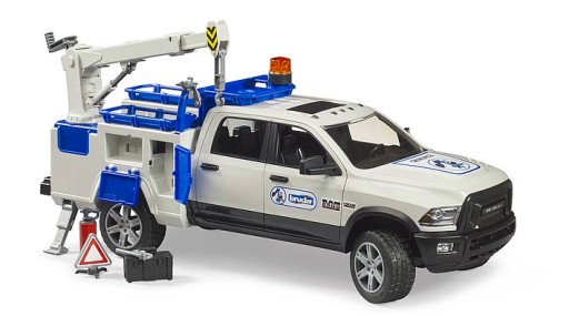 Найновішим доповненням до простору комерційних автомобілів є RAM Service Truck. Використовується там, де проводиться ремонт і обслуговування великих машин, наприклад, у сільському господарстві або на будівельних майданчиках. Для цього він оснащений поворотним і висувним монтажним краном. Необхідні інструменти та запчастини можна зберігати в кількох відділеннях. Також є подовжене висувне кермо та підресорені осі, а також повне освітлення для захисту автомобіля. У той же час інші аксесуари Bruder підходять до автомобіля, наприклад, механіка (Bruder 62100) або дорожні знаки та шлагбауми (Bruder 62007).