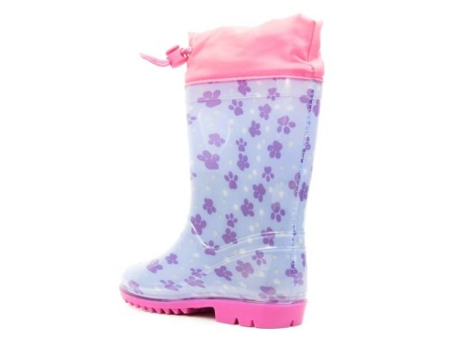 Веллінгтони були виготовлені брендом American Club. Взуття виготовлено з міцної гуми, завдяки якій вода вільно тече. Всередині текстиль. Веллінгтони мають шнурок у верхній частині верху, який допомагає захистити ногу від потрапляння води всередину взуття. Товста підошва завдяки своїй конструкції запобігає неконтрольованому ковзанню. Капони прикрашені чарівними аплікаціями та малюнком собачки.