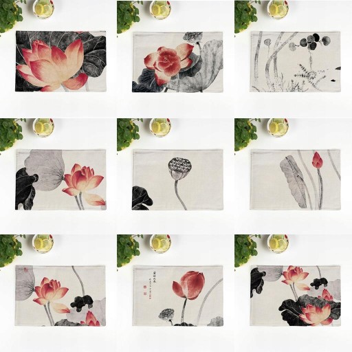 Зображення китайського лотоса на серветках, щоб додати вашому кухонному столу більше природного задоволення.