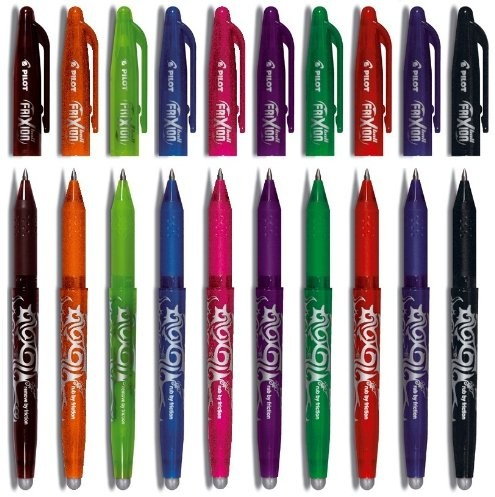 Пишіть рівно кульковою ручкою Frixion, видаляйте помилки, нагріваючи їх силіконовим наконечником, і виправляйте їх швидко та якісно! Чорнило Metamo, чутливе до перепадів температури, запатентовано Pilot. Завдяки цьому PILOT зробив революцію на ринку канцтоварів! . Обтічна форма та декоративне татуювання надають Frixion молодіжного стилю. Випускається в 10 кольорах. Його не слід використовувати під час написання офіційних документів.