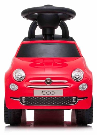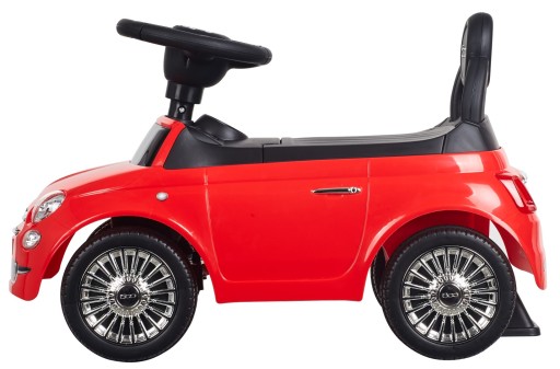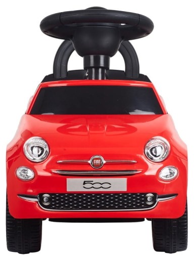 Оригінальний червоний дитячий автомобіль Fiat 500 має всі необхідні атрибути автомобілів цього відомого бренду: