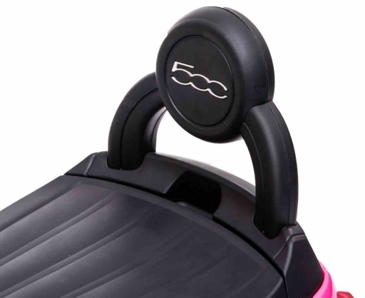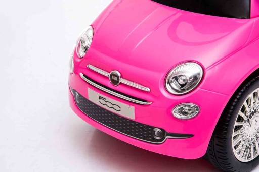 Оригінальний дитячий автомобіль Fiat 500 рожевого кольору має всі необхідні атрибути автомобілів цього відомого бренду: