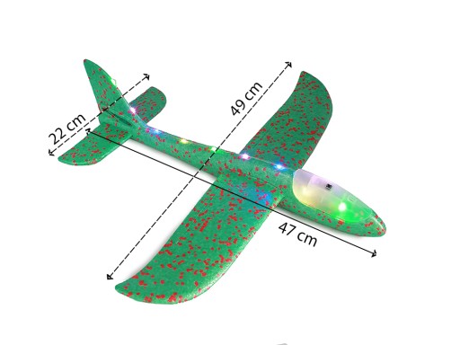 При хорошому балансі і хорошому вітрі він може пролетіти кілька десятків метрів. Завдяки можливості регулювання крил, літак може виконувати фігури вищого пілотажу в польоті. Світяться діоди на літаку гарантують дивовижний вид у вечірній час. Літак має три режими освітлення.