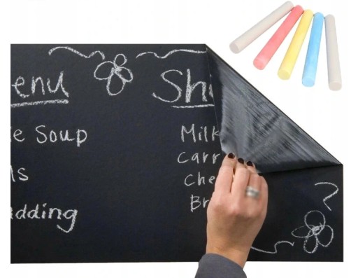 Самоклеюча крейдяна дошка ідеально підходить для дитячої кімнати, кухні, холу або вашої майстерні чи студії. Завдяки сучасній фользі для дощок стіни, меблі, двері та інші предмети у вашому домі, на яких ваша дитина любить малювати, залишаться в ідеальному стані. Без слідів кольорових олівців, фломастерів чи фломастерів, які можна видалити, лише перефарбувавши стіну.
