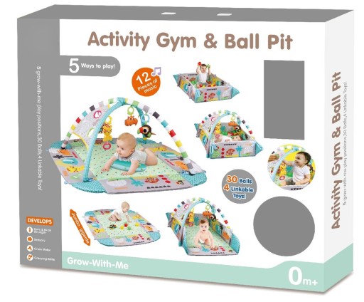 Великий навчальний килимок, манеж, басейн з підвісками + 30 м'ячів