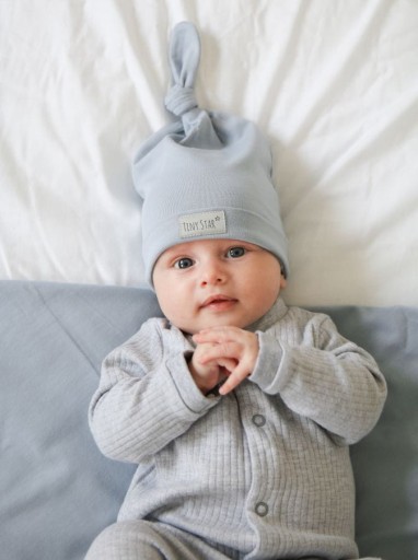 М'яка, еластична дитяча шапочка з милим вузликом, який дозволяє регулювати висоту. Розмір 0-3 м призначений для немовлят від 1 дня до приблизно 3 місяців (розмір 56/62).