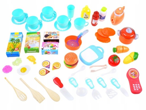 - Набір аксесуарів: каструлі, посуд, продукти, овочева нарізка
