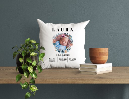 Індивідуальний та унікальний дизайн: завдяки можливості підготувати свій власний викрійку в нашому спеціальному творці, кожна подушка стає унікальною. Ви можете розмістити фотографію дитини, її свідоцтво про народження з такими важливими даними, як рік народження, вага при народженні та багато іншого.