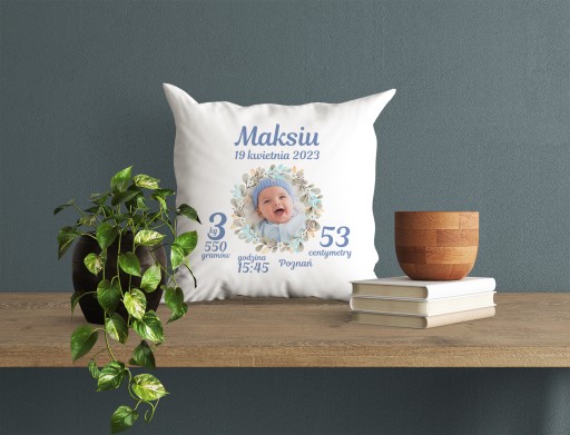 Індивідуальний та унікальний дизайн: завдяки можливості підготувати свій власний викрійку в нашому спеціальному творці, кожна подушка стає унікальною. Ви можете розмістити фотографію дитини, її свідоцтво про народження з такими важливими даними, як рік народження, вага при народженні та багато іншого.
