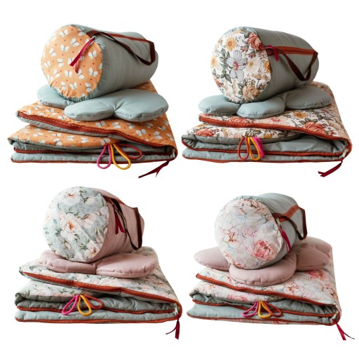 В спальний мішок і чохол вшиті бавовняні стрічки, на які можна вписати дані дитини. Зручний і практичний дитячий набір, який полегшить адаптацію дитини до дитячого садка.