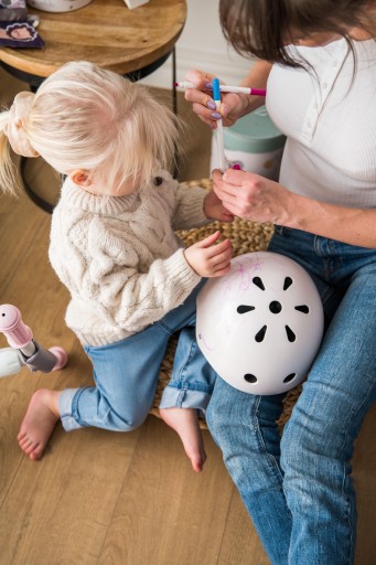 Кожен шолом MoMi MIMI стане унікальним витвором мистецтва, коли ваша дитина прикрасить його власними малюнками.Вони можуть писати олівцями або фломастерами.Коли намальоване йому набридне, ви можна легко змити і створити новий дизайн!