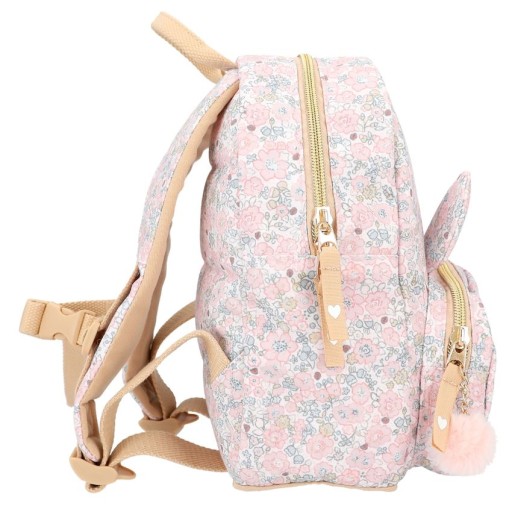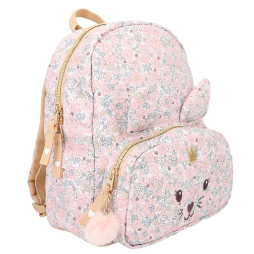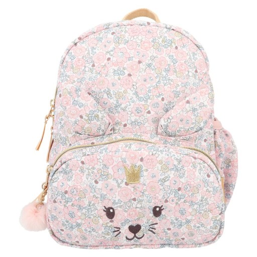 Принцеса в дорозі: чарівний рюкзак-зайчик із милими вухами, вишитим обличчям і чудовою квітковою обробкою по всьому, має просторе основне відділення з додатковими відділеннями всередині та накладною передньою кишенею.