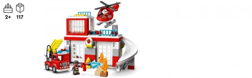 Пожежники сповзають по жолобу, стрибають у пожежну машину з ручним запуском і проїжджають через великі обертові двері з виттям сирен і блимаючими вогнями. Гелікоптер злітає з даху, щоб приєднатися до акції. Після закінчення роботи пожежники організовують навчання, а в кінці дня їдять довгу піцу і лягають спати, а завтра їх чекає ще один насичений день. Набір був підготовлений спеціально для дошкільнят і наповнений цікавими можливостями, які сприяють розвитку дітей і допомагають їм покращити координацію очей і рук, емоційну усвідомленість та інші навички, а також легко дізнатися про роботу пожежників.